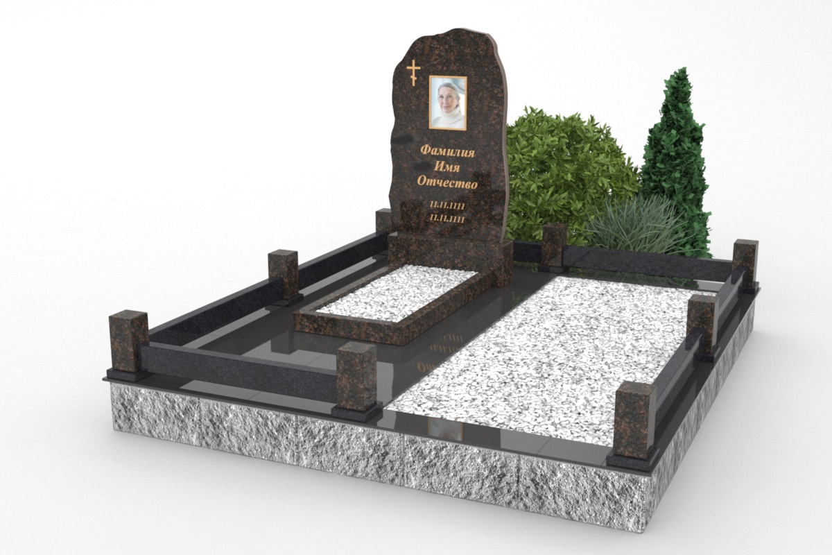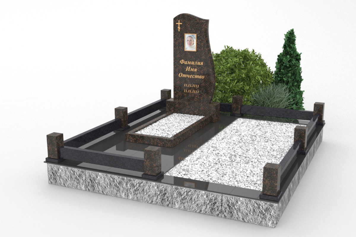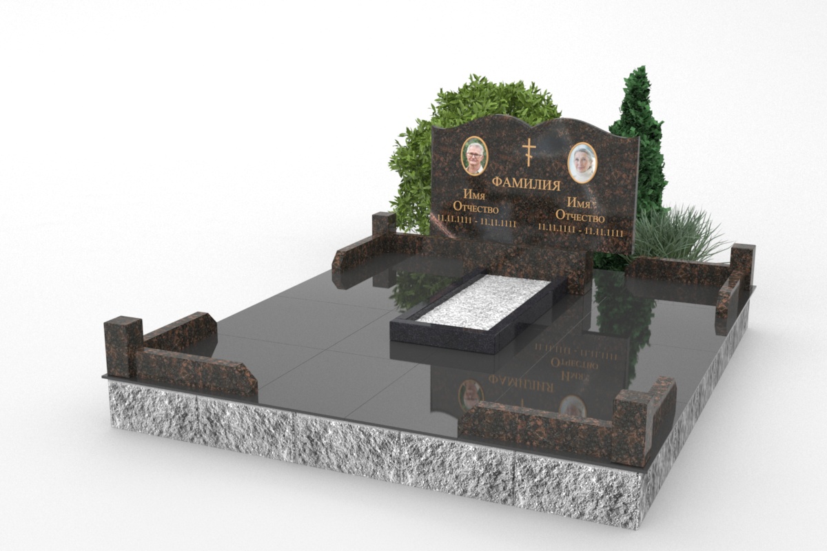 Описание: Памятник изготовлен из коричневого камня Балтийский и черного Габбро-диабаз. В комплект входит: стелы, тумба, цветник, плита полунадгробная. *в стоимость памятника не включено: художественное оформление (портрет, текст, эпитафия), бронзовые изделия, благоустройство, ограда, доставка и работы по монтажу. |